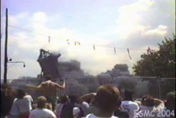As an observant friend of mine pointed out, you can see the first floor of the building was totally removed prior to demolition. Presumably, this was done to weaken the structure. One of the pictures in the PICTURES section will give you a better look at the "missing floor."